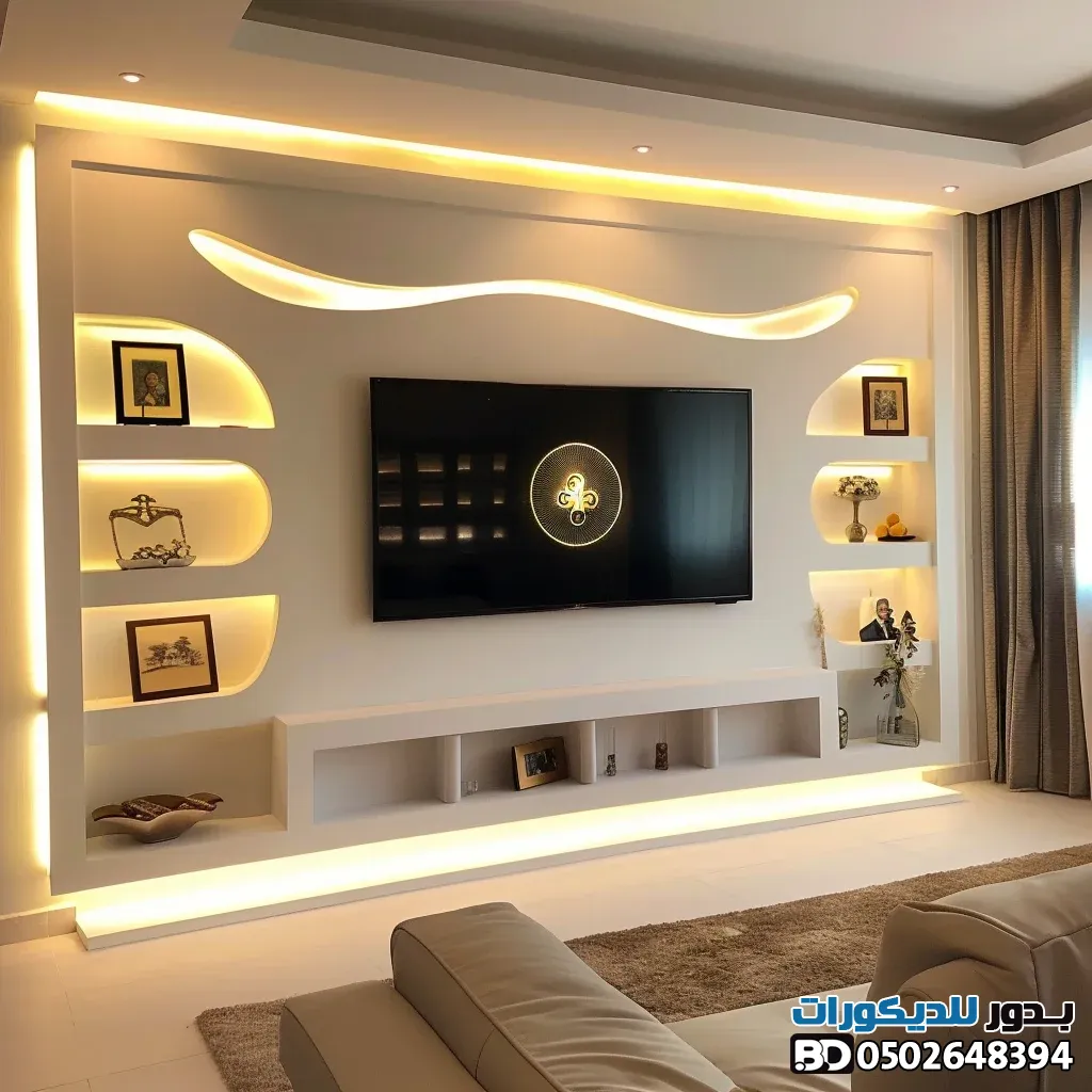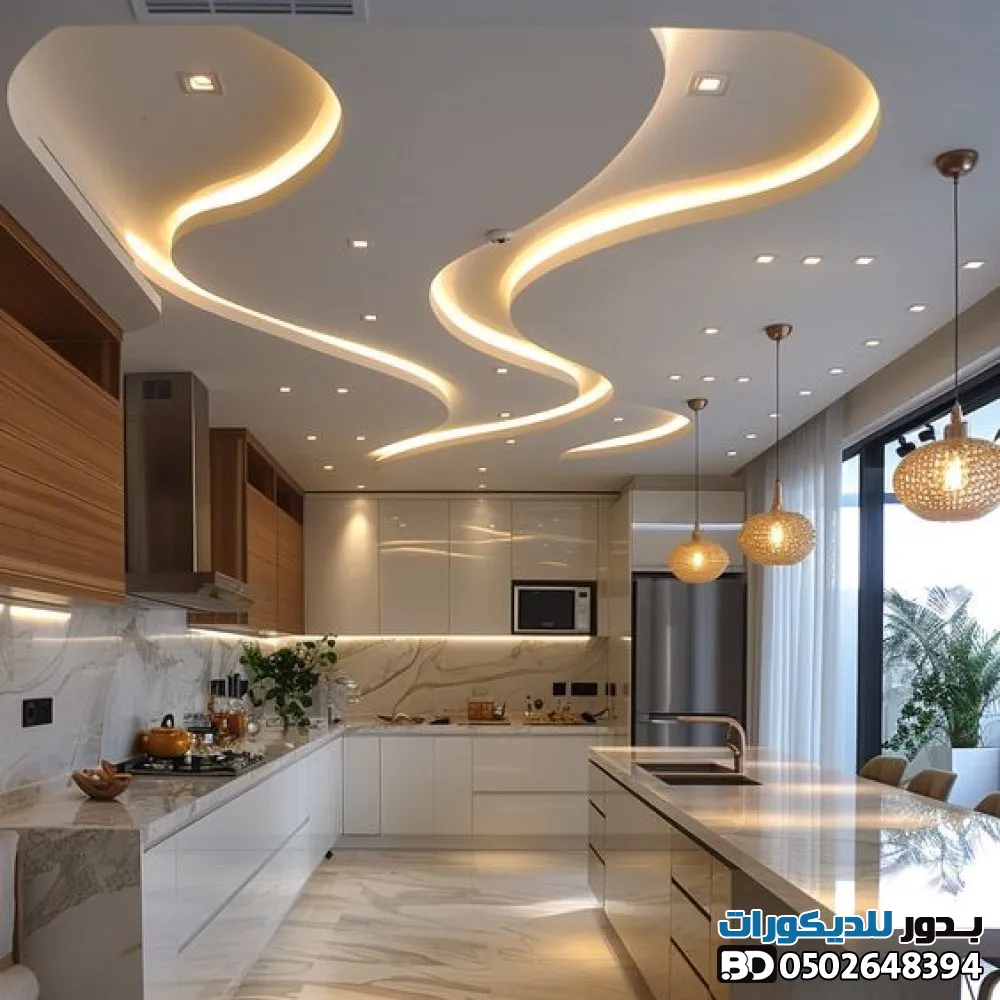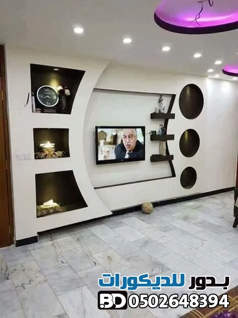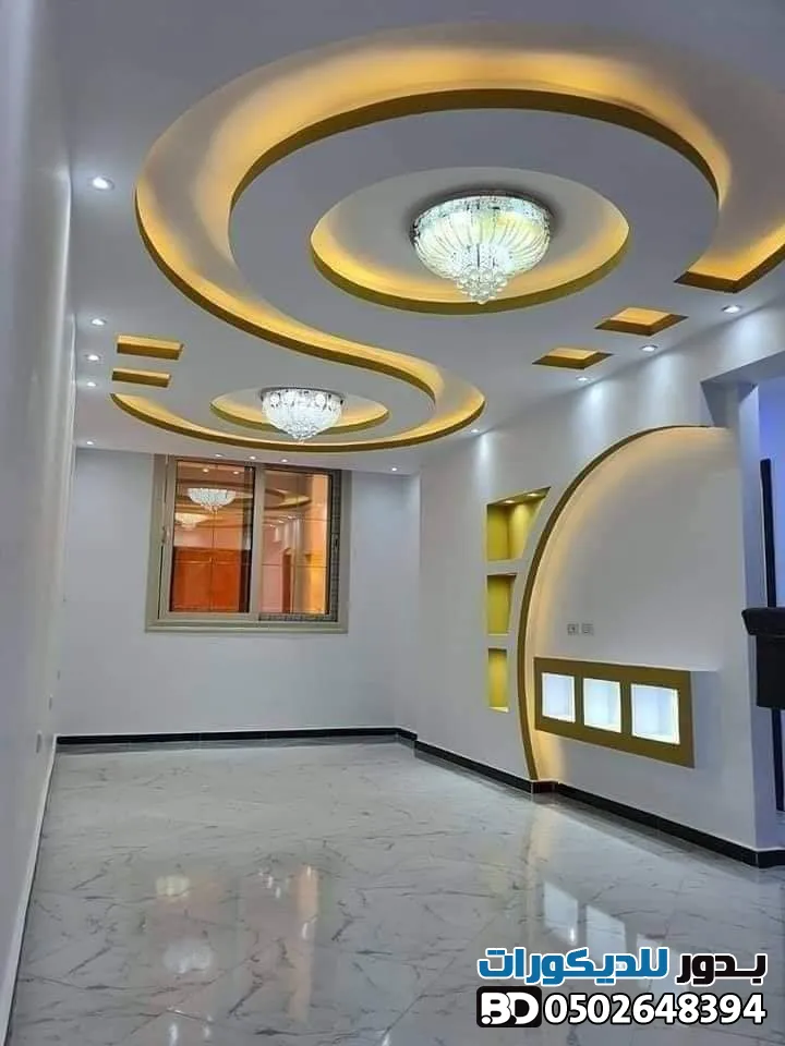 - دمج المواد: حاول دمج الجبس بورد مع الخشب أو بديل الرخام لإضافة لمسة فنية فريدة.