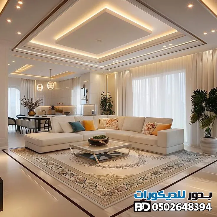- الإضاءة المخفية: استخدم "بيت النور" لإعطاء إحساس بارتفاع السقف.
