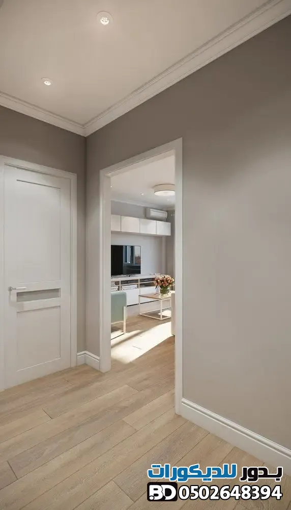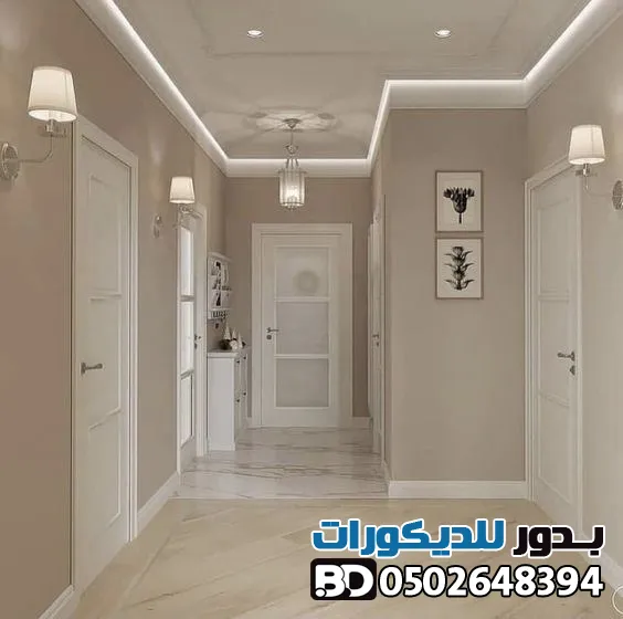 - التناسب مع المساحة: في الممرات الضيقة، استخدم الألوان الفاتحة والدهانات ذات اللمعة الخفيفة لتعكس الضوء وتوحي بالاتساع.